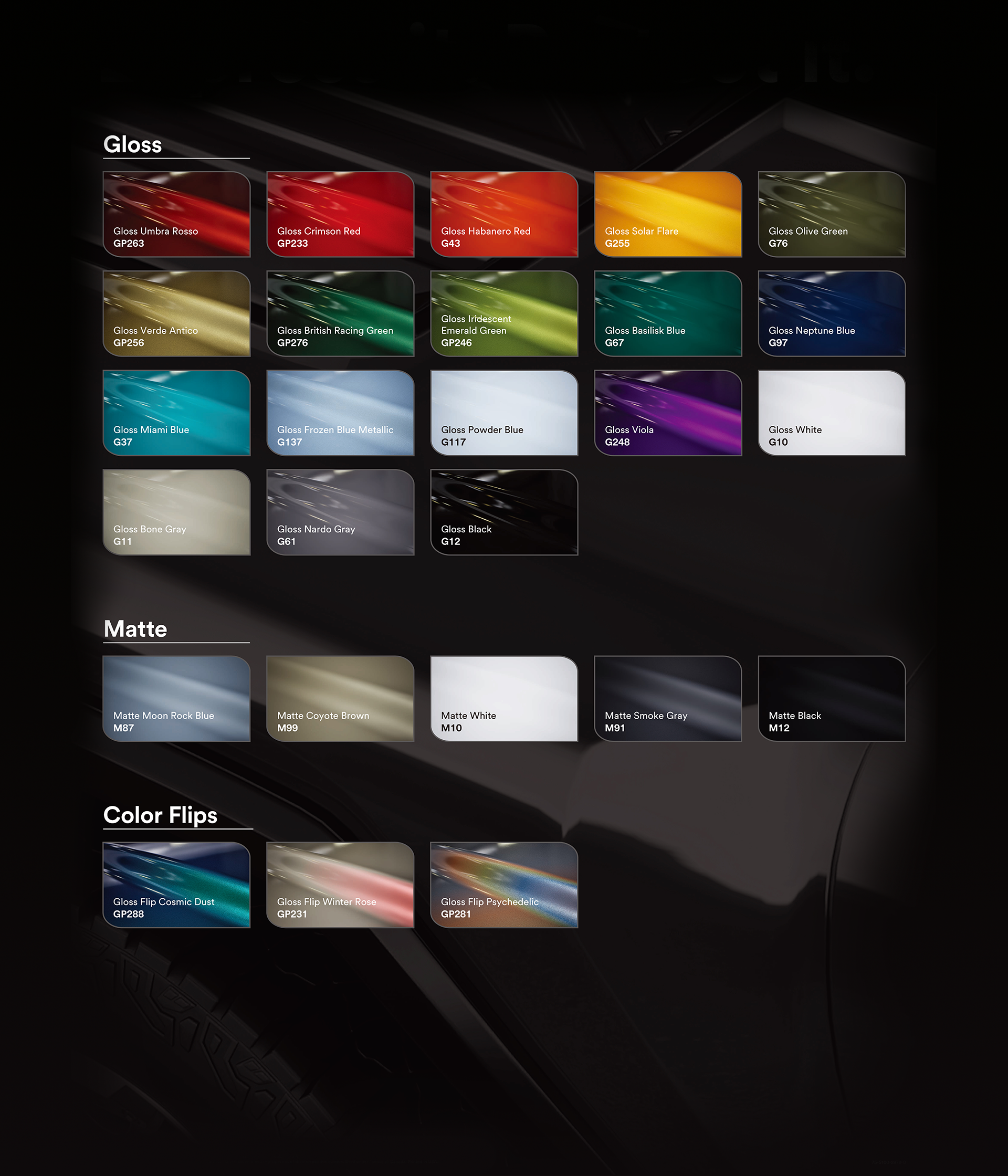광택 또는 무광 마감을 포함한 약 30가지 프리미엄 색상 및 색상변화(플립)